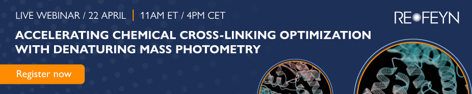 In this webinar Dr Oscar Hernandez Alba, Research Scientist from the BioOrganic Mass Spectrometry Laboratory, CNRS, will compare denaturing mass photometry (dMP) with SDS-PAGE for screening XL conditions, demonstrating key advantages including: rapid screening of 20 XL conditions in one hour (3mins/triplicate), 20–100x lower sample consumption and single molecule sensitivity. By the end of the session, participants will have a clear understanding of how dMP enhances structural biology workflows, enabling comprehensive characterization of PPIs and macromolecular assemblies, including intermediate states prior to downstream analysis.