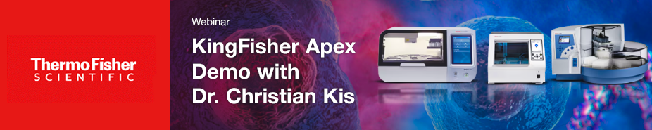 Watch Staff Scientist, Dr. Christian Kis, explain the functionality and uses of KingFisher Apex for sample preparation. KingFisher purification instruments automate the extraction and purification of DNA, RNA, proteins, cells, and exosomes. Applications range from oncology biomarker analyte isolation for downstream research into cancer mutation detection, microbial nucleic acid isolation for pathogen detection, to isolating genomic DNA (gDNA) for genetic testing.